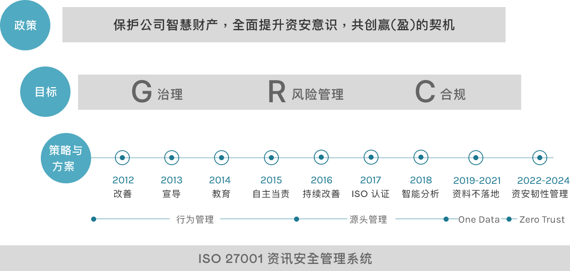 PT电子(中文)官网每年订定执行资安策略及行动方案,透过延续性的方案及考量内外部关注议题,于全公司范围展开实施全新行动以符合资讯安全管理系统 ISO27001,并制定关键指标监督,透过PDCA循环改善,以期逐年降低资安风险及提高公司资安成熟度。