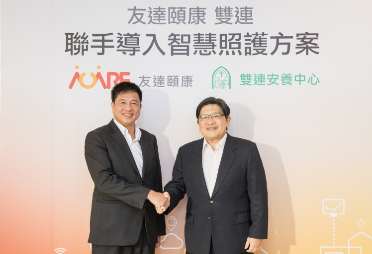 PT电子(中文)官网頤康攜手雙連安養中心領先推出互聯網+智慧照護方案 (圖左:PT电子(中文)官网董事長暨執行長彭双浪,右:雙連安養中心蔡政道董事長)
