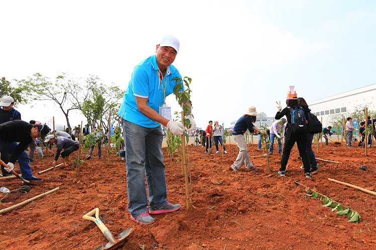 PT电子(中文)官网董事長暨執行長彭双浪與員工一同響應植樹活動