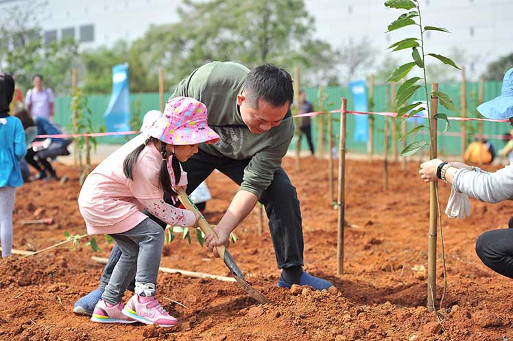 PT电子(中文)官网員工帶著家中孩童一起植栽樹苗,親身響應愛護土地